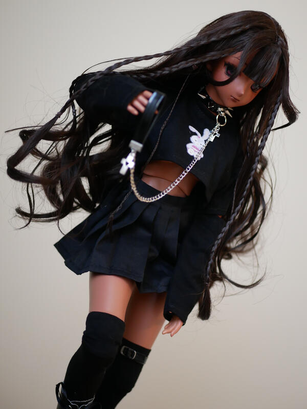 All vinyl parts are airbrushed using high quality vinyl paint and protected with mat varnish. The frame is dyed using a plastic dye so the color won't peel off the joints when moving the doll.